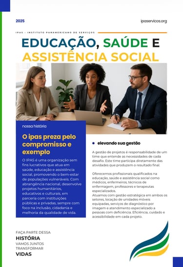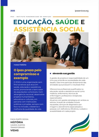 O IPAS é uma organização sem fins lucrativos que atua em saúde, educação e assistência social, promovendo o bem-estar de populações vulneráveis. Com abrangência nacional, desenvolve projetos humanitários, educativos e culturais, em parceria com instituições públicas e privadas, sempre com foco na inclusão, cidadania e melhoria da qualidade de vida.