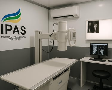 Realização de exames de imagem, como tomografias e radiologia com uso de radiação ionizante;